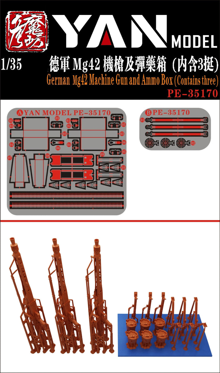 3pcs 3D-Printed 1/35 German MG-42 Machine Gun