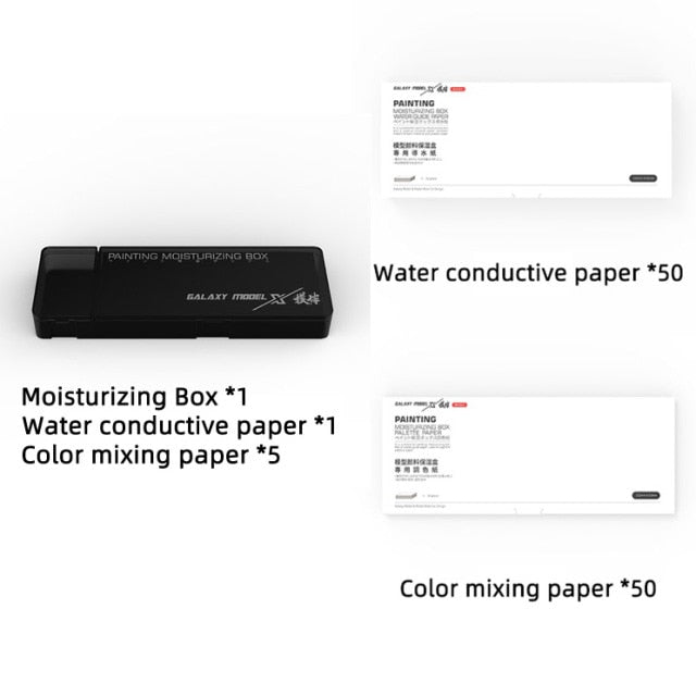 * Kompletny model zawiera samą paletę, kawałek pianki, 50 arkuszy papieru przewodzącego wodę oraz 50 arkuszy papieru do mieszania kolorów.